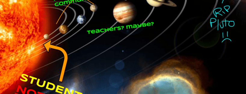 I tend to think of a school community a little like a solar system. If my students are the center (which they should be), like the sun, then the bodies closest to them– parents, coaches, teachers etc– are the ones that not only have largest spheres of influence and connection (gravitational pull, if you will), but also the most reliable knowledge about what it’s like closest to that center.