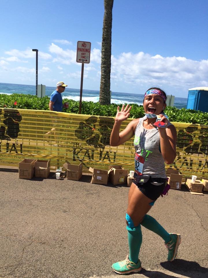 The Kaua‘i Marathon put these ideas into physical practice: I had to settle in and run my race. It would have been easy to give in to the desire to be angry or frustrated while in pain during the race– lots of people do. By refusing to give in, I  stayed true to myself and was able to stay positive throughout the race. I ran nearly all of it with a smile on my face (something spectators lovingly noticed, which pushed me to keep doing it!). That’s the kind of person I want to be and be remembered as.